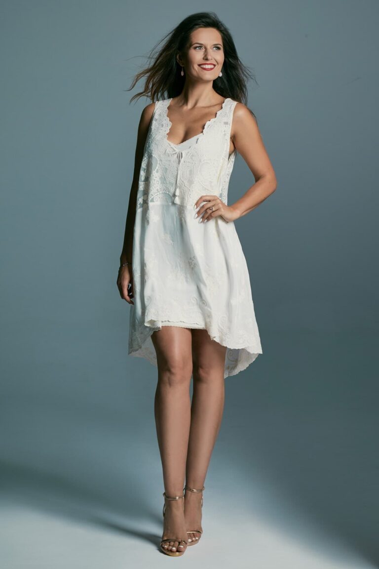Jeśli kochasz styl boho to krótka sukienka wizytowa wykonana właśnie w tym stylu z pewnością skradnie Twoje serce. Uszyta z wyjątkowo miękkiej i przewiewnej bawełny jest idealną propozycją na skromny ślub w plenerze lub poprawiny. Poznaj propozycję, która jest subtelna i romantyczna, a jednocześnie zmysłowa i seksowna.