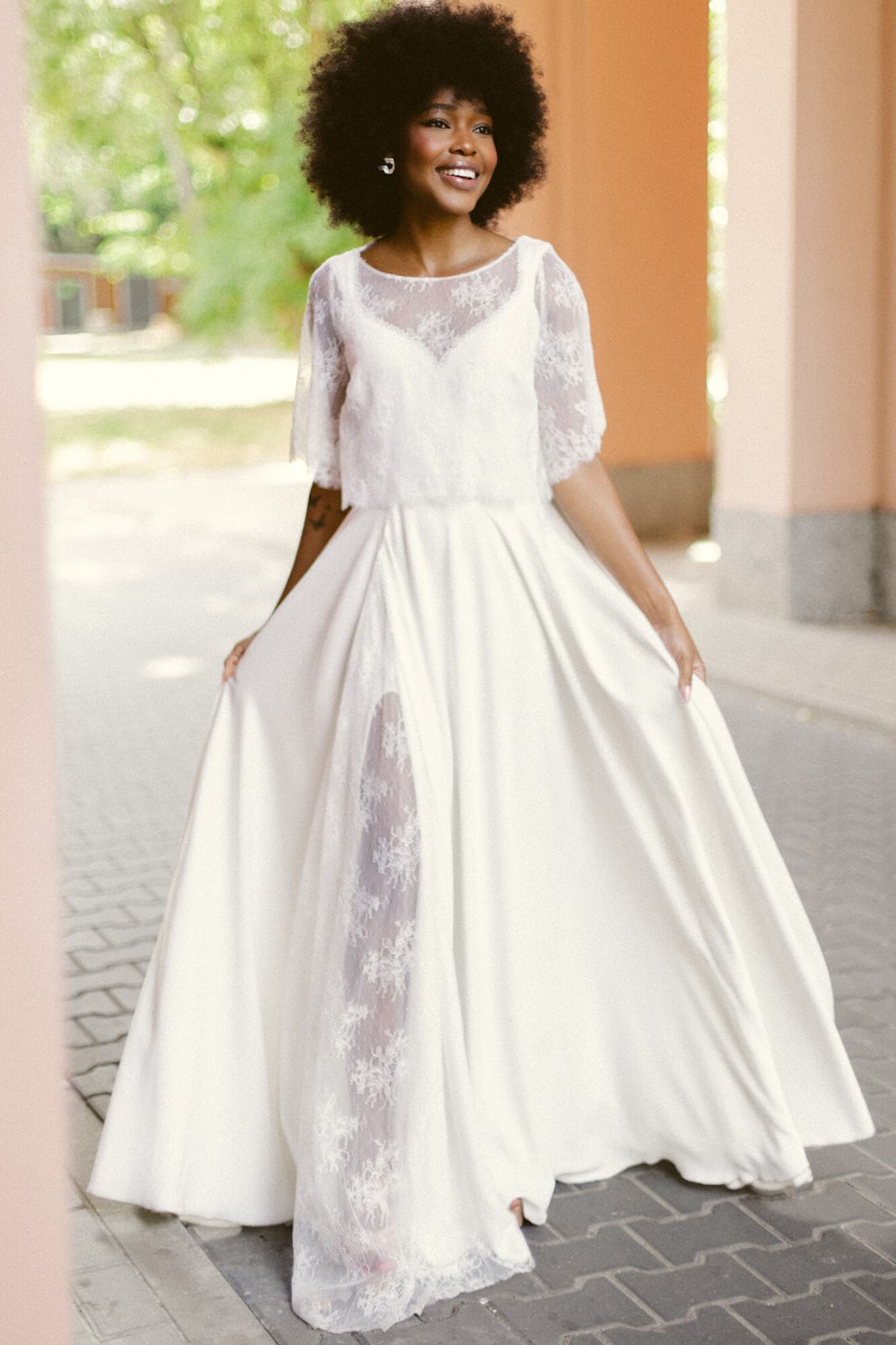 Twoją wymarzoną suknię uszyjemy w jeden dzień – rano mierzymy i dobieramy fason, kolor i wykończenia, po południu masz krótką przymiarkę techniczną (łączymy na Tobie elementy), a na koniec skracamy suknię i odbierasz gotową kreację tego samego dnia! Dla nas każda sylwetka jest „łatwa” – czy jesteś wysoka, czy niska, drobna czy masz pełne kształty, masz obfity biust czy ledwie widoczny, asymetrię ciała czy niepełnosprawności – uszyjemy suknię na Twoją figurę i na Twoją miarę!