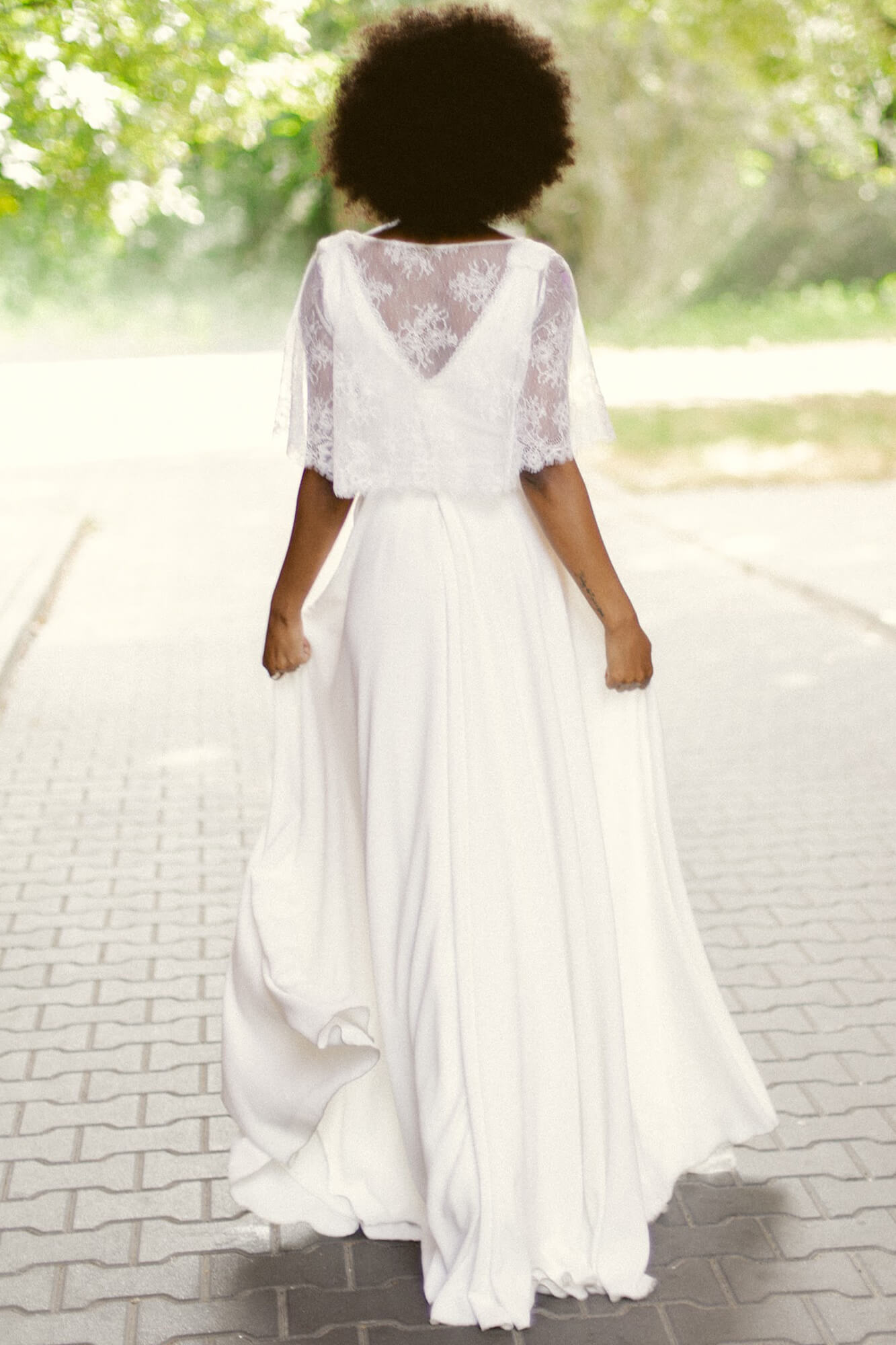 Twoja suknia zostanie uszyta z niesamowicie miękkiego, lekkiego i lejącego szyfonu, który będzie się poruszał nawet przy lekkim ruchu powietrza. Jeśli marzysz o klasycznej sukni ślubnej, ale przeraża Cię jej ciężar lub niewygodny gorset to jest to idealne rozwiązanie dla Ciebie! Ta suknia jest tak lekka, że możesz zapomnieć ją założyć! A podszewka tak elastyczna, że nie będziesz chciała jej zdjąć! Diabeł tkwi w szczegółach - zobacz subtelne wykończenia.