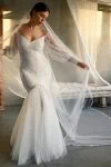 Ta suknia to model wyjściowy - możemy w niej zmienić praktycznie wszystko! Pogłębić lub spłycić dekolt, zmienić jego wykończenie, kształt, dodać lub odjąć falbankę czy frędzle. Rękawy mogą być dłuższe lub krótsze, mieć inny kształt niż te na zdjęciu. Może też nie być ich wcale. Tiul w spódnicy można dodać (lub odjąć) na wierzchu, albo pod spodem. Podszewka może być długa lub krótka w odcieniach bieli i beżu. Rozcięcie na nogę i tren można dodać lub usunąć praktycznie w każdym modelu.