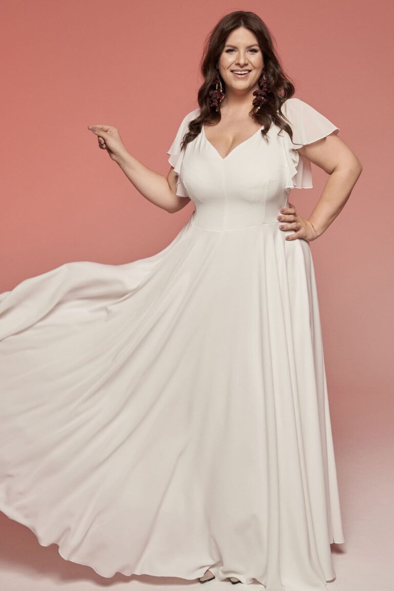 Twoja suknia zostanie uszyta z niesamowicie miękkiego, lekkiego i lejącego szyfonu, który będzie się poruszał nawet przy lekkim ruchu powietrza. Jeśli marzysz o klasycznej sukni ślubnej, ale przeraża Cię jej ciężar lub niewygodny gorset to jest to idealne rozwiązanie dla Ciebie! Ta suknia jest tak lekka, że możesz zapomnieć ją założyć! A podszewka tak elastyczna, że nie będziesz chciała jej zdjąć! Diabeł tkwi w szczegółach - zobacz subtelne wykończenia.