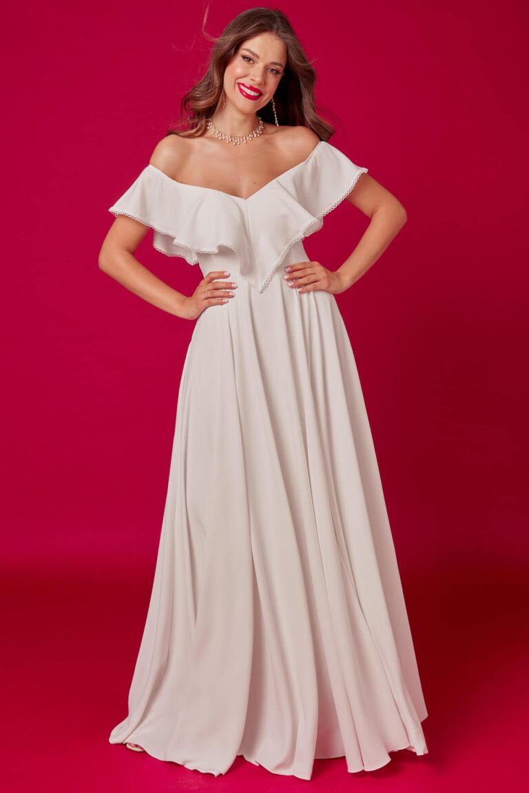 Twoja suknia zostanie uszyta z niesamowicie miękkiego, lekkiego i lejącego szyfonu, który będzie się poruszał nawet przy lekkim ruchu powietrza. Jeśli marzysz o klasycznej sukni ślubnej, ale przeraża Cię jej ciężar lub niewygodny gorset to jest to idealne rozwiązanie dla Ciebie! Ta suknia jest tak lekka, że możesz zapomnieć ją założyć! A podszewka tak elastyczna, że nie będziesz chciała jej zdjąć! Diabeł tkwi w szczegółach - zobacz subtelne wykończenia.
