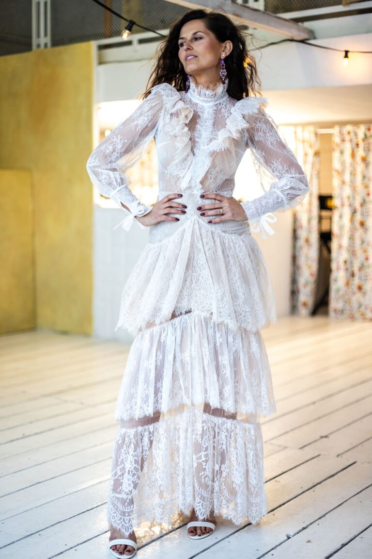 Uszyta ze sprawdzonych i przetestowanych przez nas materiałów. Używane przez nas koronki są mięciutkie, a dzięki swej lekkości cudownie układają się na sylwetce i pięknie wirują w tańcu. Ich elastyczność sprawia, że pracują z Twoim ciałem. Zapewniają komfort rosnącemu ciążowemu brzuszkowi. Praktycznie wszystkie nasze koronki są łatwe do prania w domowej pralce i niegniotące, dzięki czemu swoją suknię spokojnie możesz spakować do walizki i zabrać na romantyczną sesję poślubną.