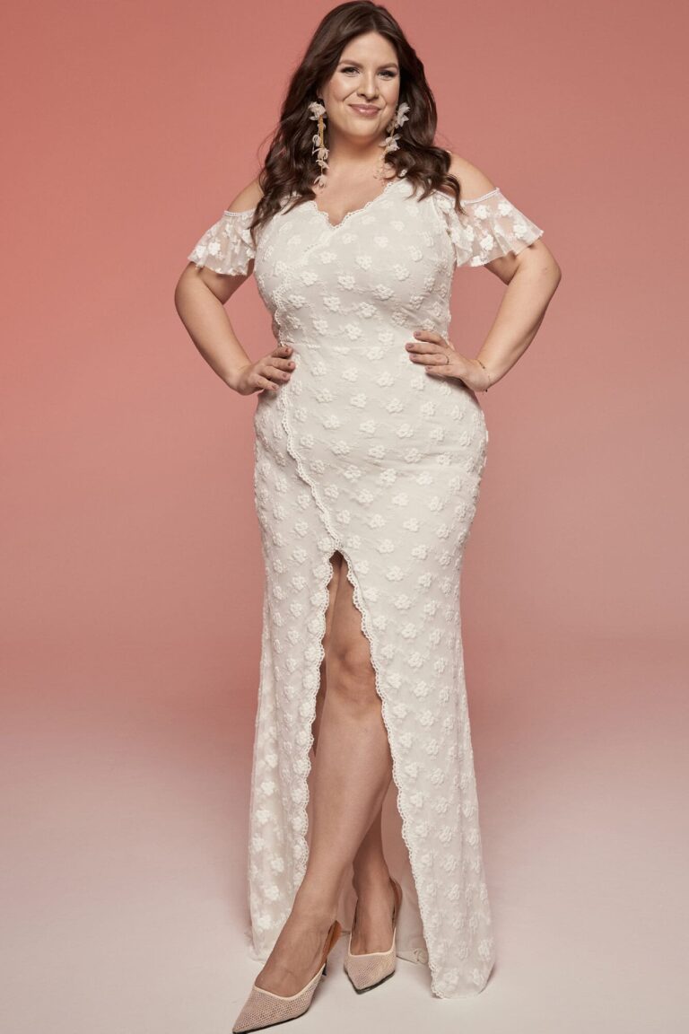 Obcisła suknia ślubna plus size podkreślająca kształty