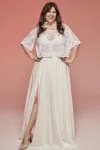 Ta suknia to model wyjściowy - możemy w niej zmienić praktycznie wszystko! Pogłębić lub spłycić dekolt, zmienić jego wykończenie, kształt, dodać lub odjąć falbankę czy frędzle. Rękawy mogą być dłuższe lub krótsze, mieć inny kształt niż te na zdjęciu. Może też nie być ich wcale. Tiul w spódnicy można dodać (lub odjąć) na wierzchu, albo pod spodem. Podszewka może być długa lub krótka w odcieniach bieli i beżu. Rozcięcie na nogę i tren można dodać lub usunąć praktycznie w każdym modelu.