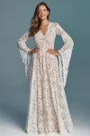 Ta suknia to model wyjściowy - możemy w niej zmienić praktycznie wszystko! Pogłębić lub spłycić dekolt, zmienić jego wykończenie, kształt, dodać lub odjąć falbankę czy frędzle. Rękawy mogą być dłuższe lub krótsze, mieć inny kształt niż te na zdjęciu. Może też nie być ich wcale. Tiul w spódnicy można dodać (lub odjąć) na wierzchu, albo pod spodem. Podszewka może być długa lub krótka w odcieniach bieli i beżu. Rozcięcie na nogę i tren można dodać lub usunąć praktycznie w każdym modelu.