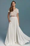Ta suknia to model wyjściowy - możemy w niej zmienić praktycznie wszystko! Pogłębić lub spłycić dekolt, zmienić jego wykończenie, kształt, dodać lub odjąć falbankę czy frędzle. Rękawy mogą być dłuższe lub krótsze, mieć inny kształt niż te na zdjęciu. Może też nie być ich wcale. Tiul w spódnicy można dodać (lub odjąć) na wierzchu, albo pod spodem. Podszewka może być długa lub krótka w odcieniach bieli i beżu. Rozcięcie na nogę i tren można dodać lub usunąć praktycznie w każdym modelu.