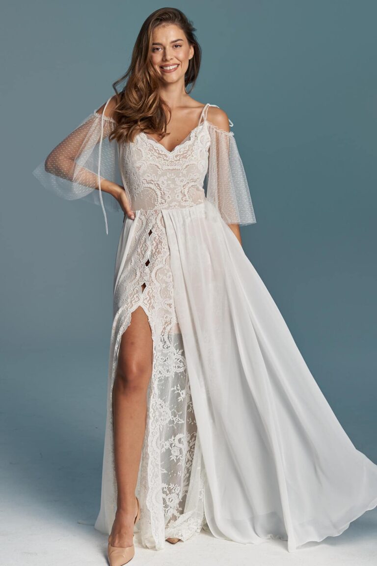 Twoja suknia zostanie uszyta z niesamowicie miękkiego, lekkiego i lejącego szyfonu, który będzie się poruszał nawet przy lekkim ruchu powietrza. Jeśli marzysz o klasycznej sukni ślubnej, ale przeraża Cię jej ciężar lub niewygodny gorset to jest to idealne rozwiązanie dla Ciebie! Ta suknia jest tak lekka, że możesz zapomnieć ją założyć! A podszewka tak elastyczna, że nie będziesz chciała jej zdjąć! Diabeł tkwi w szczegółach - zobacz subtelne wykończenia.