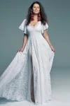 Ta suknia to model wyjściowy - możemy w niej zmienić praktycznie wszystko! Pogłębić lub spłycić dekolt, zmienić jego wykończenie, kształt, dodać lub odjąć falbankę czy frędzle. Rękawy mogą być dłuższe lub krótsze, mieć inny kształt niż te na zdjęciu. Może też nie być ich wcale. Tiul w spódnicy można dodać (lub odjąć) na wierzchu, albo pod spodem. Podszewka może być długa lub krótka w odcieniach bieli i beżu. Rozcięcie na nogę i tren można dodać lub usunąć praktycznie w każdym modelu.