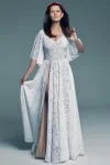 Ta suknia to model wyjściowy - możemy w niej zmienić praktycznie wszystko! Pogłębić lub spłycić dekolt, zmienić jego wykończenie, kształt, dodać lub odjąć falbankę czy frędzle. Rękawy mogą być dłuższe lub krótsze, mieć inny kształt niż te na zdjęciu. Może też nie być ich wcale. Tiul w spódnicy można dodać (lub odjąć) na wierzchu, albo pod spodem. Podszewka może być długa lub krótka w odcieniach bieli i beżu. Rozcięcie na nogę i tren można dodać lub usunąć praktycznie w każdym modelu.
