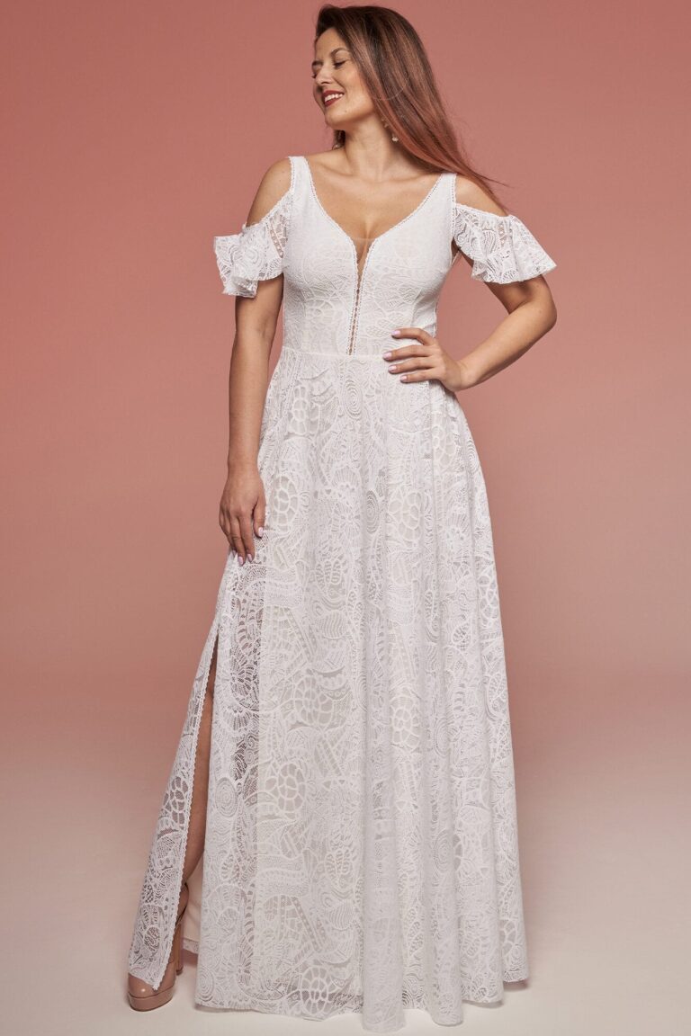 Uszyta ze sprawdzonych i przetestowanych przez nas materiałów. Używane przez nas koronki są mięciutkie, a dzięki swej lekkości cudownie układają się na sylwetce i pięknie wirują w tańcu. Ich elastyczność sprawia, że pracują z Twoim ciałem. Zapewniają komfort rosnącemu ciążowemu brzuszkowi. Praktycznie wszystkie nasze koronki są łatwe do prania w domowej pralce i niegniotące, dzięki czemu swoją suknię spokojnie możesz spakować do walizki i zabrać na romantyczną sesję poślubną.