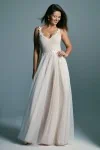 Skromna, tiulowa suknia ślubna na ramiączkach to świetna propozycja dla minimalistek. Nie ma tu mocnych wzorów, zbyt wielu zdobień czy warstw. Szyjąc ten model dla Ciebie, na miarę, możemy to zmienić! Piaskowy kolor podszewki można zastąpić białą lub cielistą. Na ramionach może się pojawić dowolny rękaw, na plecach frędzle, na nogach rozcięcie, a na spódnicy dodatkowe warstwy tiulu. Masz także wpływ na kształt dekoltu czy szerokość ramiączek.